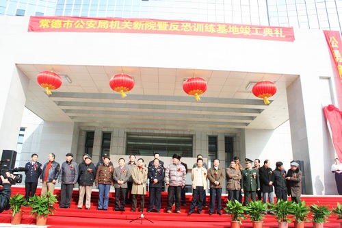 2010年上午10點(diǎn)58分,常德市公安局機(jī)關(guān)新院暨反恐訓(xùn)練基地竣工儀式在新大樓前坪準(zhǔn)時拉開序幕。中*共湖南省委委員、省公安廳黨委副書記、常務(wù)副廳長唐中元,中*共常德市委副書記、市長陳文浩,中*共常德市委副書記曹儒國,常德市人大常委會主任劉本之,常德市政協(xié)主席劉春林,市委常委、市政法委書記胡宗清,市委常委歐運(yùn)崇,市委常委、常務(wù)副市長劉小明,市委常委、副市長宋冬春,市委常委、市軍分區(qū)司令員董正武,市委常委、市統(tǒng)戰(zhàn)部部長李愛國等領(lǐng)導(dǎo)以及公司董事長張照耀先生出席了儀式。